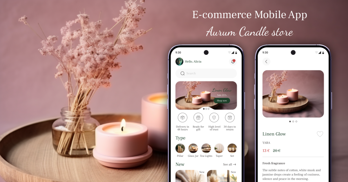 Aurum – Mobile E-commerce Candle Store App UI Template