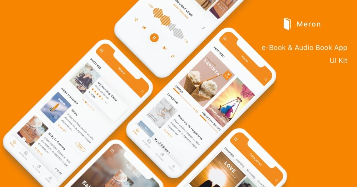 e-Book & Audio Book App UI Kit is designed with modern design trends.