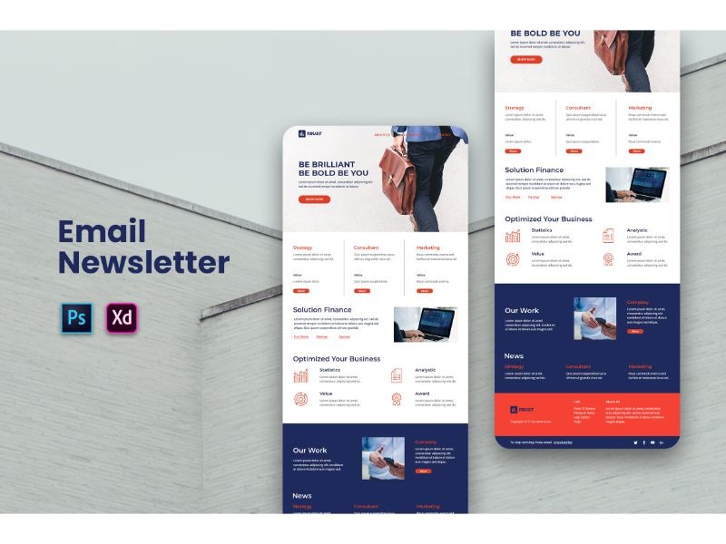 Email Newsletter, that makes your email marketing memorable with good design and colorful. This would be good for your marketing strategies and This will help you to promote your online business worldwide. You can editable and customizable It’s 100% in adobe photoshop and adobe XD.