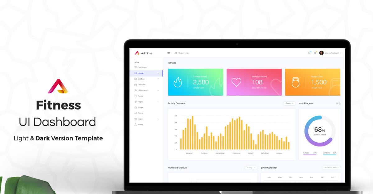 Fitness Admin Dashboard UI Kit designed with Photoshop with a modern look. A fully design admin dashboard. It can be used in the Fitness of web applications such as admin panel, project management system, admin dashboard, application backend, and so on. Includes light and dark versions.