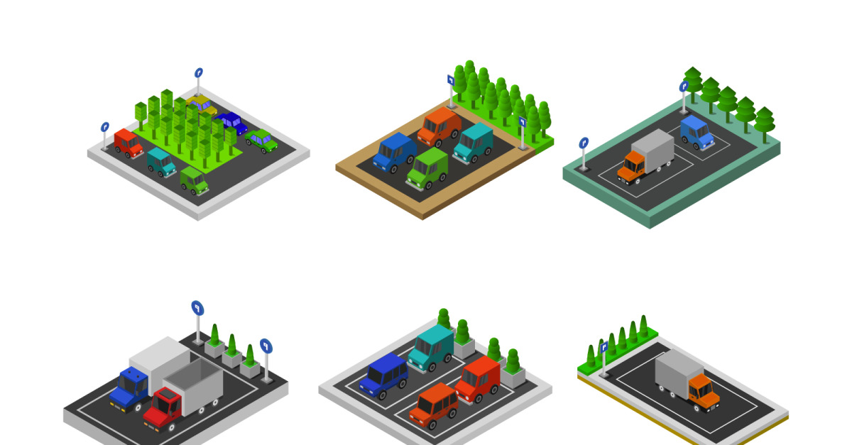 detailed and high quality isometric parking, colored and illustrated in vector on a white background divided into the various vector paths and in EPS format available for Adobe Illustrator and usable for any support and graphic use ready for immediate use for your graphic projects