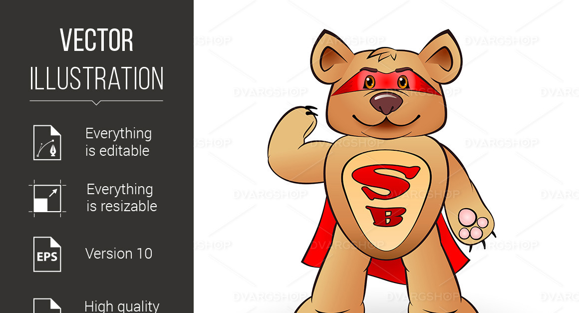 Super bear dressed in a red cloak with the letters S and B standing on white background