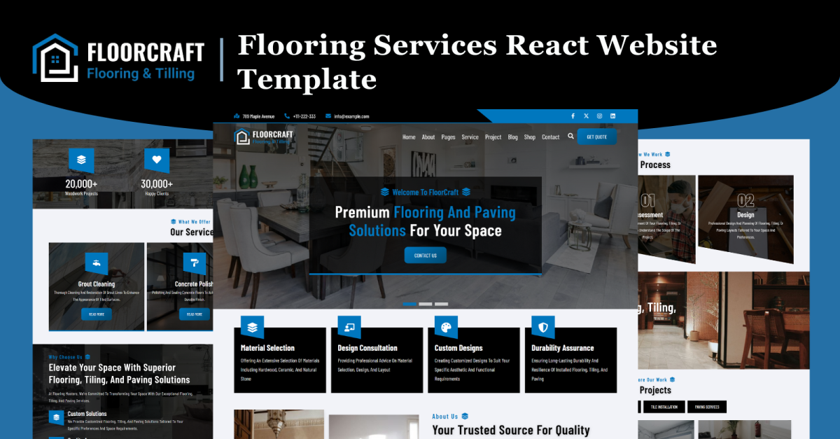 FloorCraft is a thoughtfully developed React template created for flooring professionals, tiling contractors, and surface design experts. Crafted using React.js, modern JavaScript, and responsive CSS3, it ensures fast performance, seamless user experience, and stunning visuals on all screen sizes. FloorCraft offers an ideal digital presence for displaying top-tier flooring options, showcasing project galleries, sharing client feedback, and managing service inquiries with ease. Its clean, modern aesthetic and conversion-focused features help surface specialists engage homeowners, build trust, and demonstrate craftsmanship, innovation, and commitment to transforming interiors with style and precision.