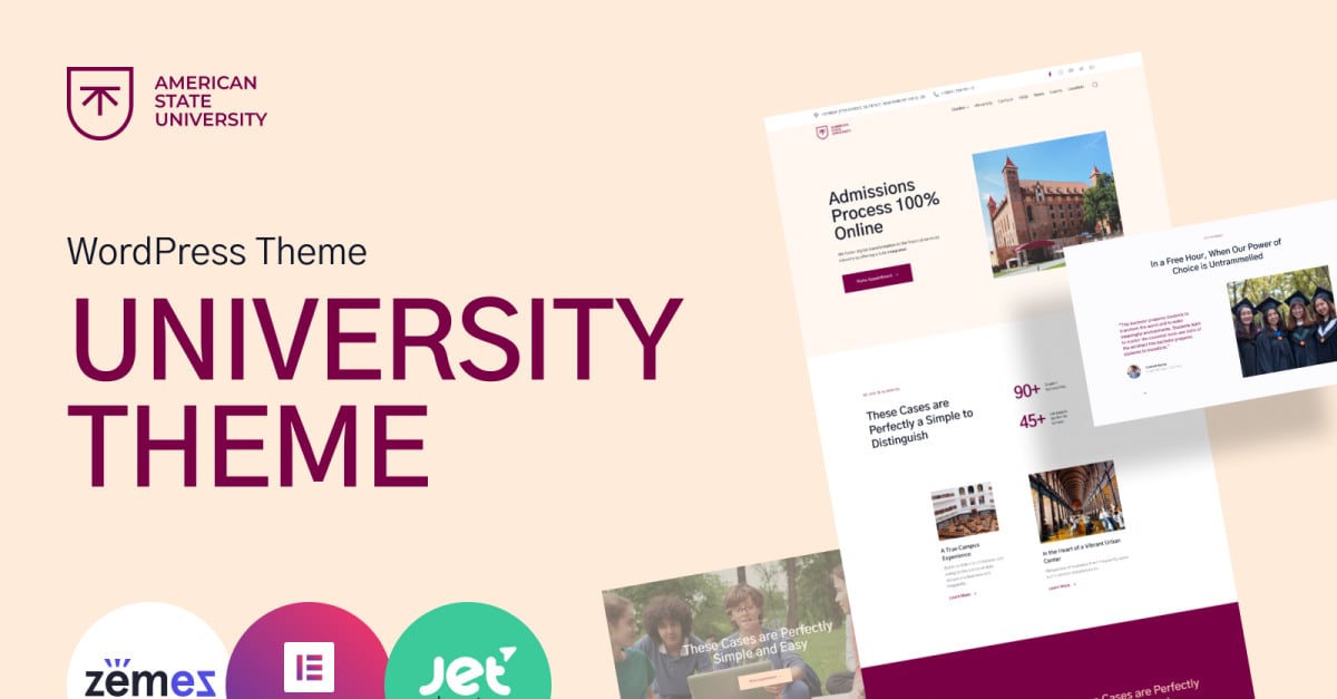Choose the American State University WordPress Theme, a flexible university WordPress solution built with Elementor for creating full-featured websites for universities, colleges, and schools. It helps you promote educational institutions or launch an online courses portal without requiring professional web-development skills. The theme is designed for comfortable use by students, teachers, administrators, and visitors alike.