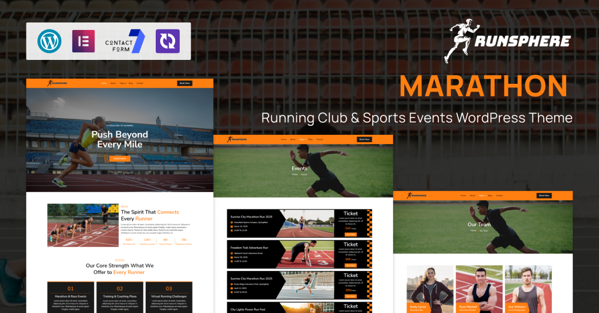 RunSphere – Marathon, Running Club & Sports Events WordPress Theme is a dynamic, modern, and energetic theme designed for marathon organizers, running clubs, fitness trainers, and sports event companies. With a vibrant athletic aesthetic and powerful event management features, RunSphere helps you promote upcoming races, training programs, and running communities with ease.