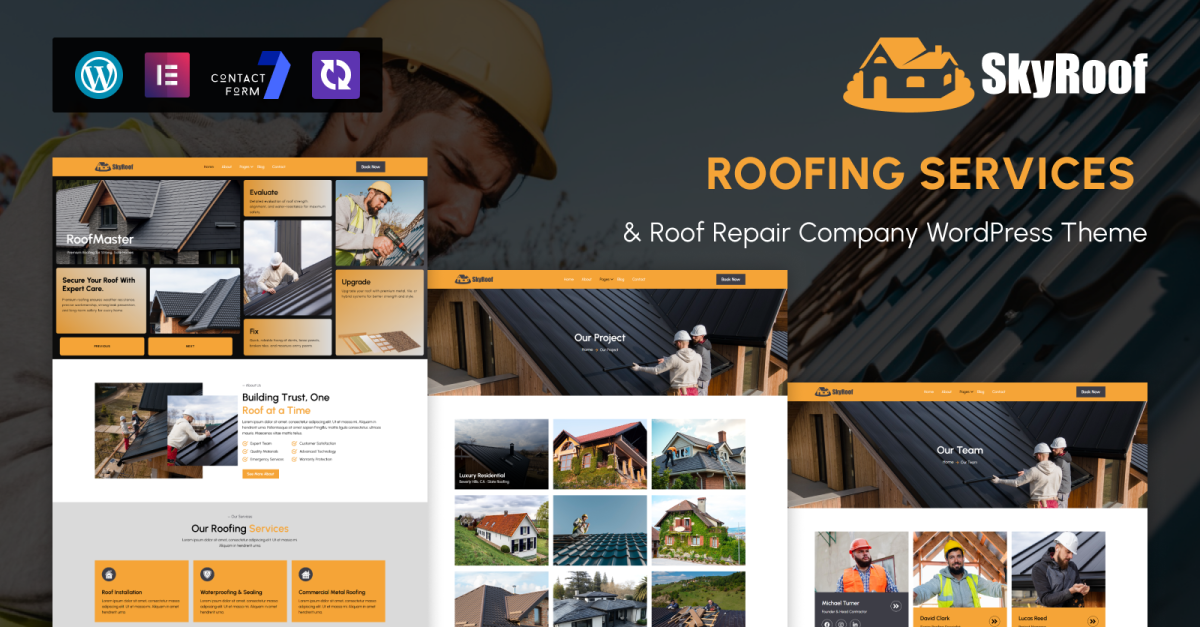 SkyRoof – Roofing Services & Roof Repair Company WordPress Theme is a professional, clean, and feature-rich theme crafted for roofing contractors, roof repair specialists, home renovation experts, and construction service companies. With its modern structure and warm color palette, SkyRoof allows you to showcase your roofing expertise, projects, and client trust with style and clarity.