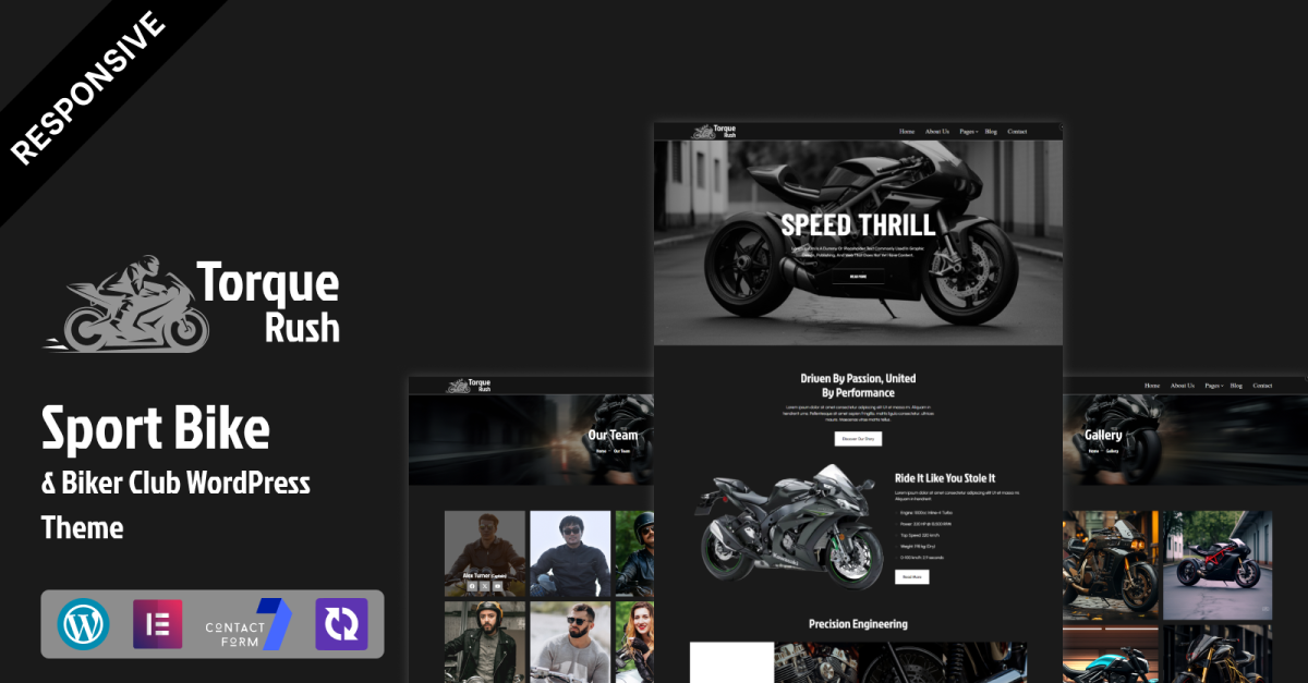 This theme captures the spirit of speed, adrenaline, and freedom with a bold design, sleek animations, and high-contrast visuals. Whether you are creating an online hub for your biker club, promoting biking events, selling merchandise, or showcasing custom bikes, TorqueRush provides the perfect combination of functionality and style.